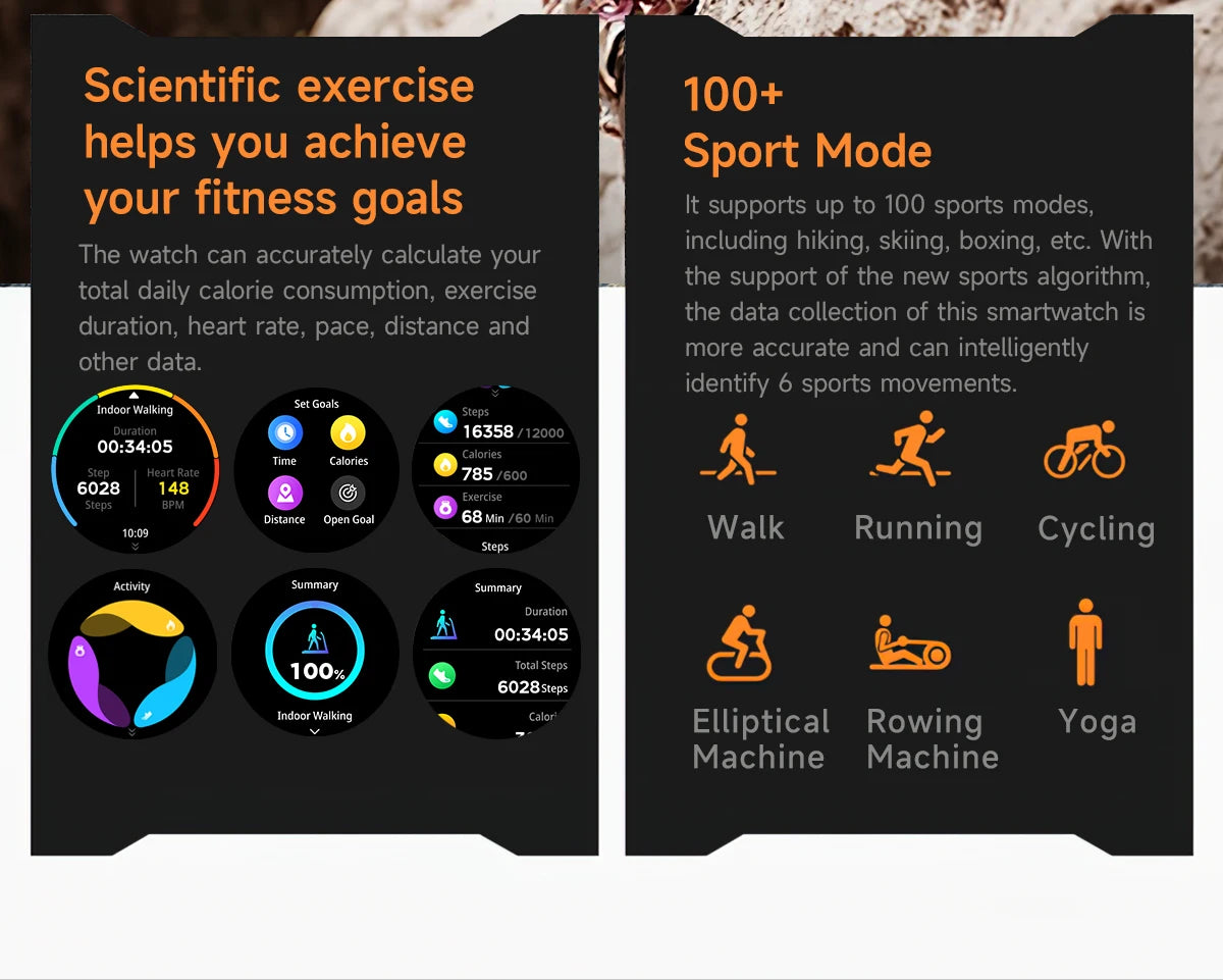 π 100+ Sport Modes β From hiking and running to swimming and cycling, record every move and push your limits further.