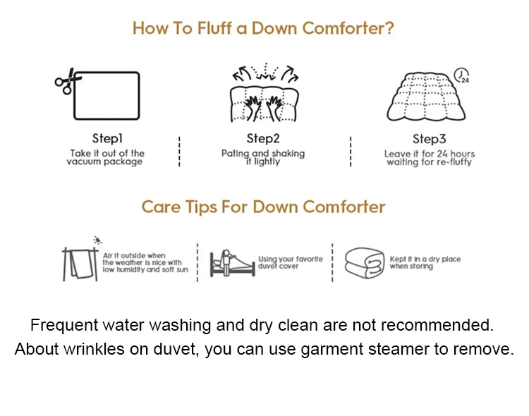 Material: Cotton + Polyester cover with Grade A goose down filling