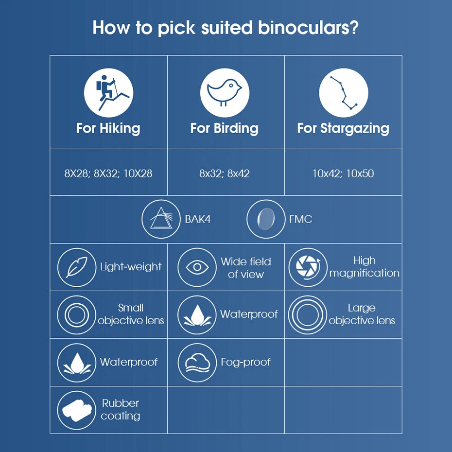 Perfect for bird watching, stargazing, hunting, concerts, sports, travel, and survival expeditions.