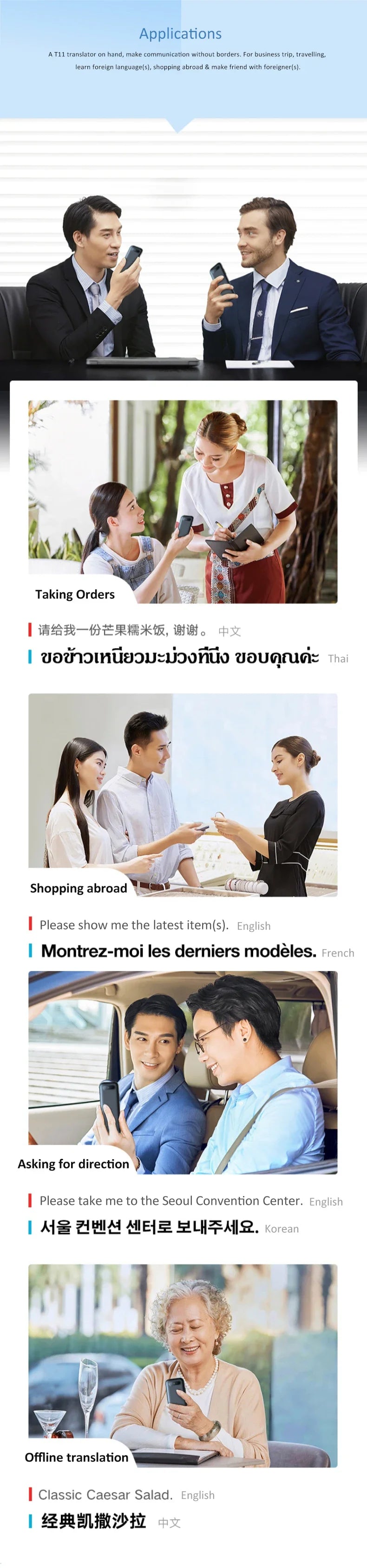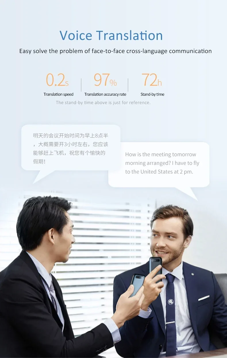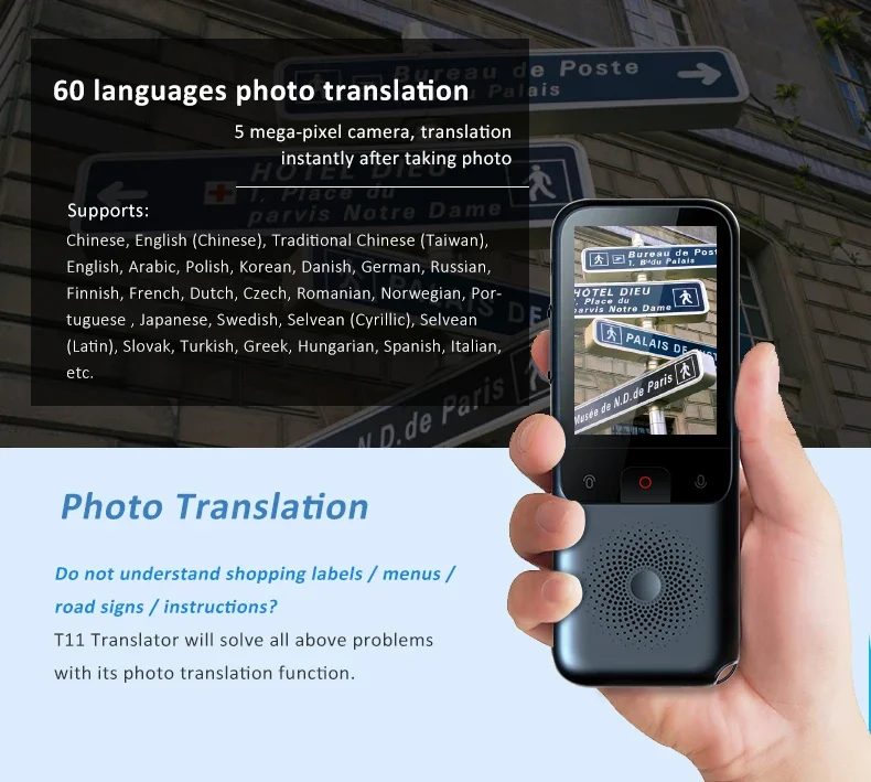 Powered by Android and Google Translation Engine, the T11 offers continuous updates to provide the latest translation capabilities. With 1GB RAM, 8GB storage, and a 1500 mAh battery supporting up to 4 hours of continuous use, it is compact, lightweight, and reliable.