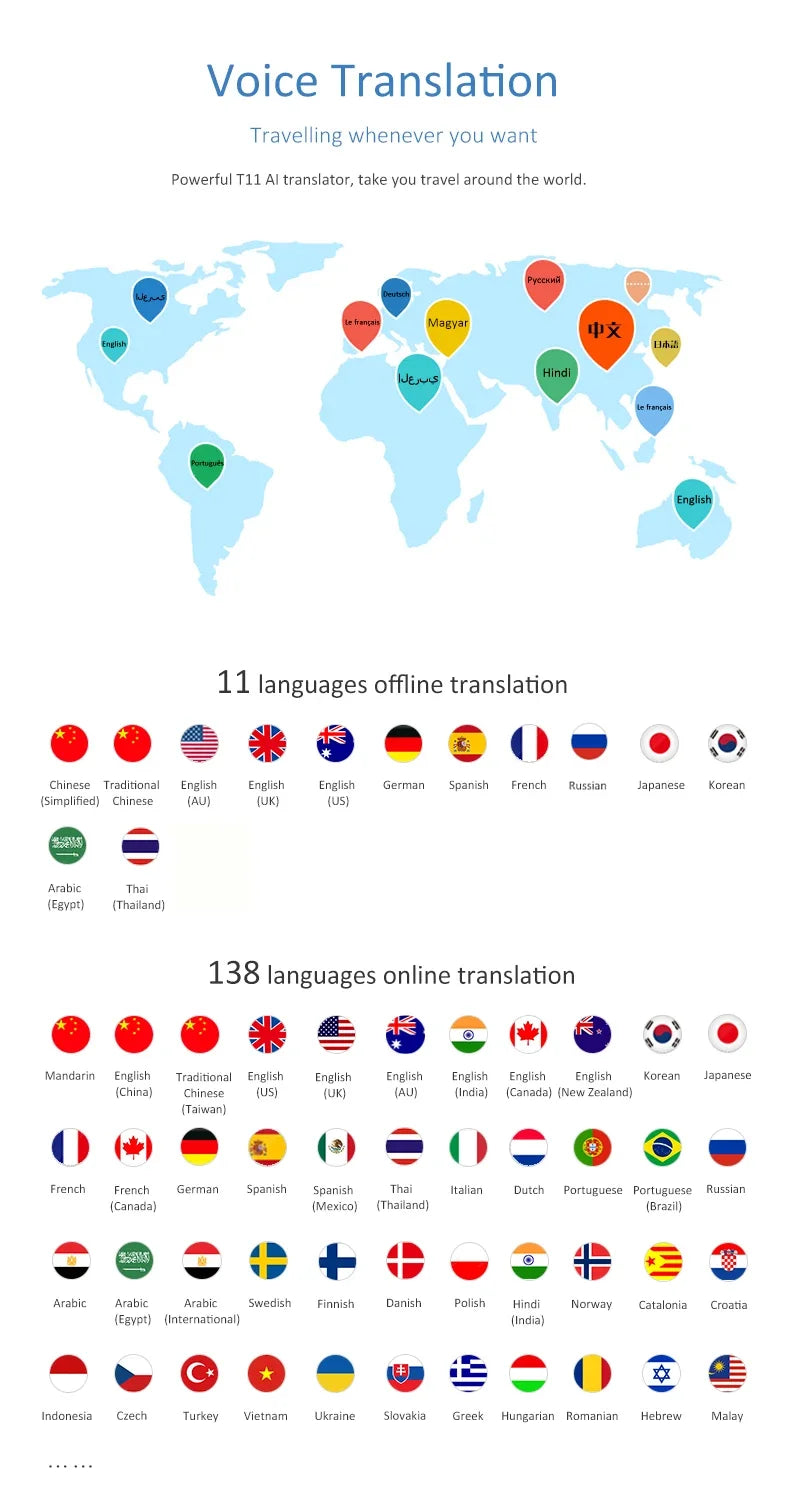 - 138 Language T11 Smart Translator Portable Audio Offline Real-time Intelligent Voice AI Photo Translator - Offline Translation - Treasurepulse