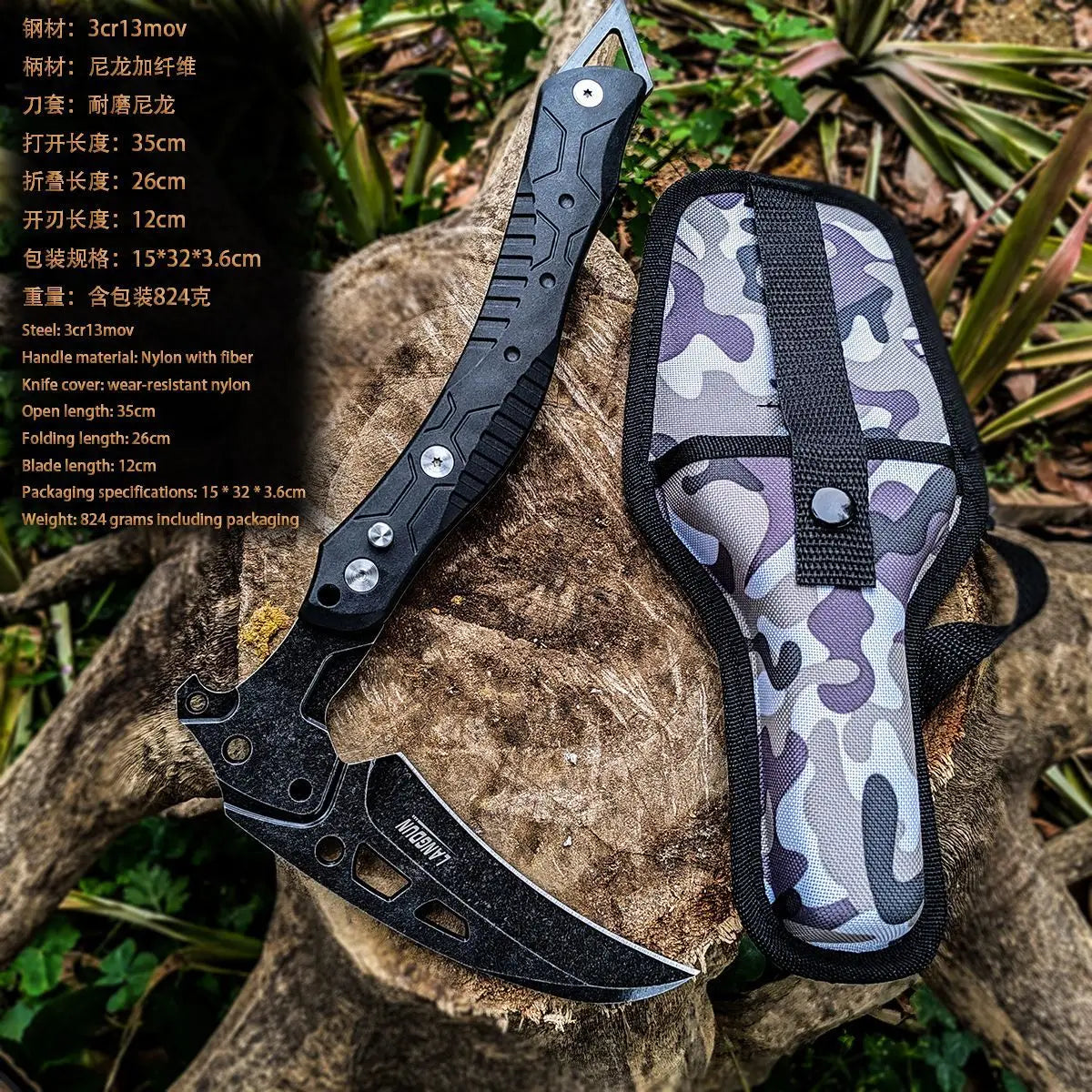• Multifunctional Design: Combines axe, machete, and knife functionality for cutting, chopping, and slicing tasks.
