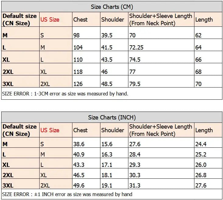 Refer to the Size Chart for accurate measurements. (Note: Sizes are based on CN standards.)