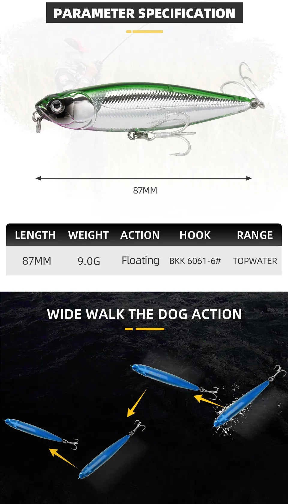 • 🎣 Realistic “Walk the Dog” Action – Creates irresistible zig-zag movement on the surface.