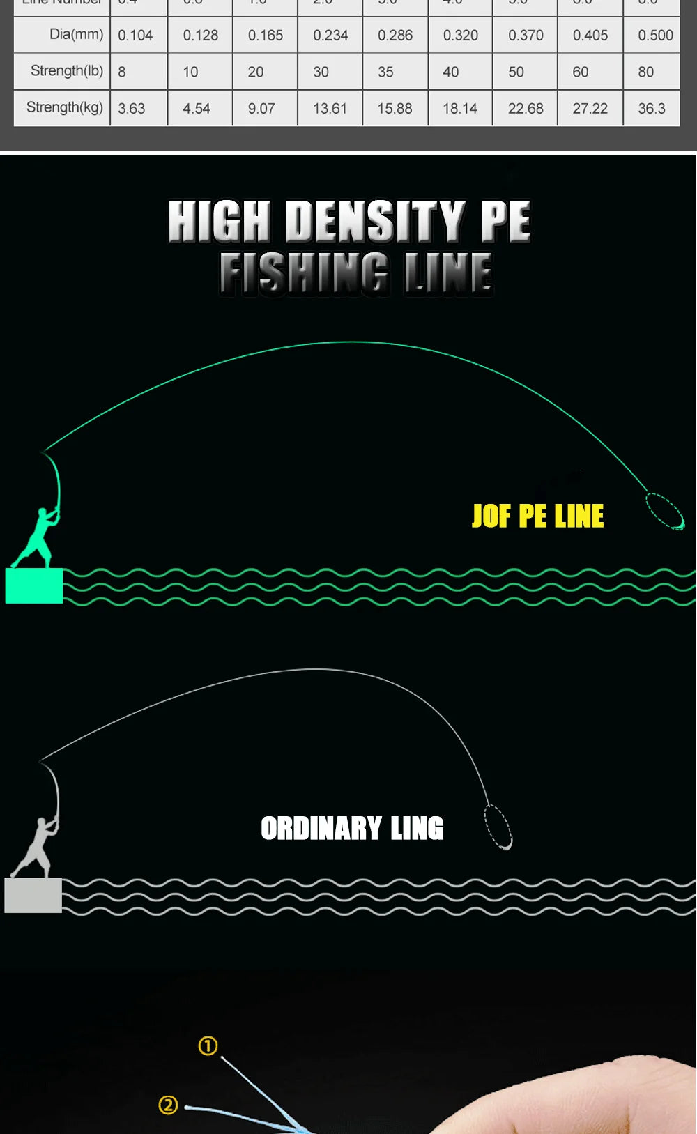 | 8.0# | 0.50mm | 80LB | 36.30kg |